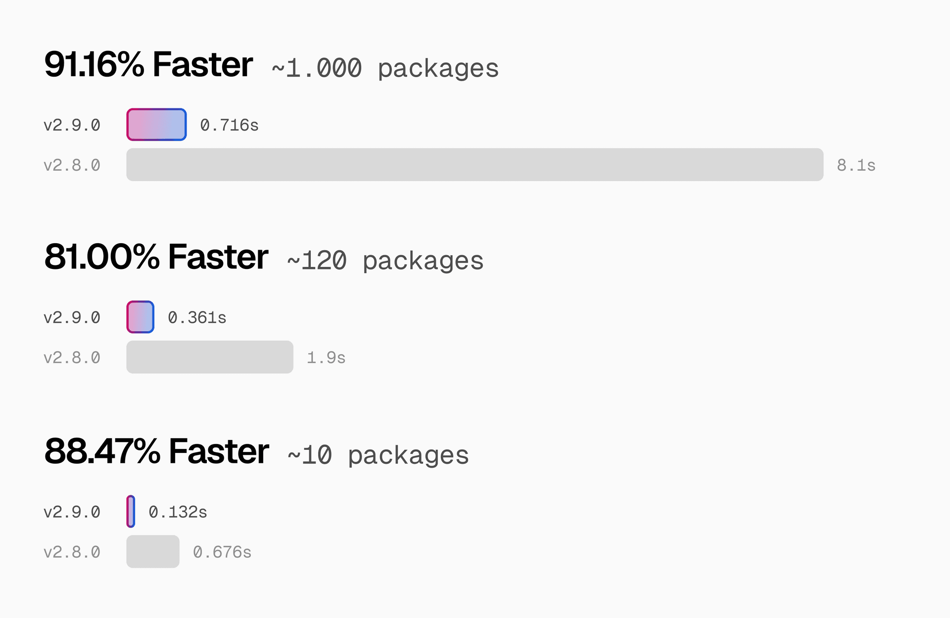These performance gains are now stable and ready for you to use. Visit the Turborepo 2.9 release post to learn more about the latest in Turborepo.