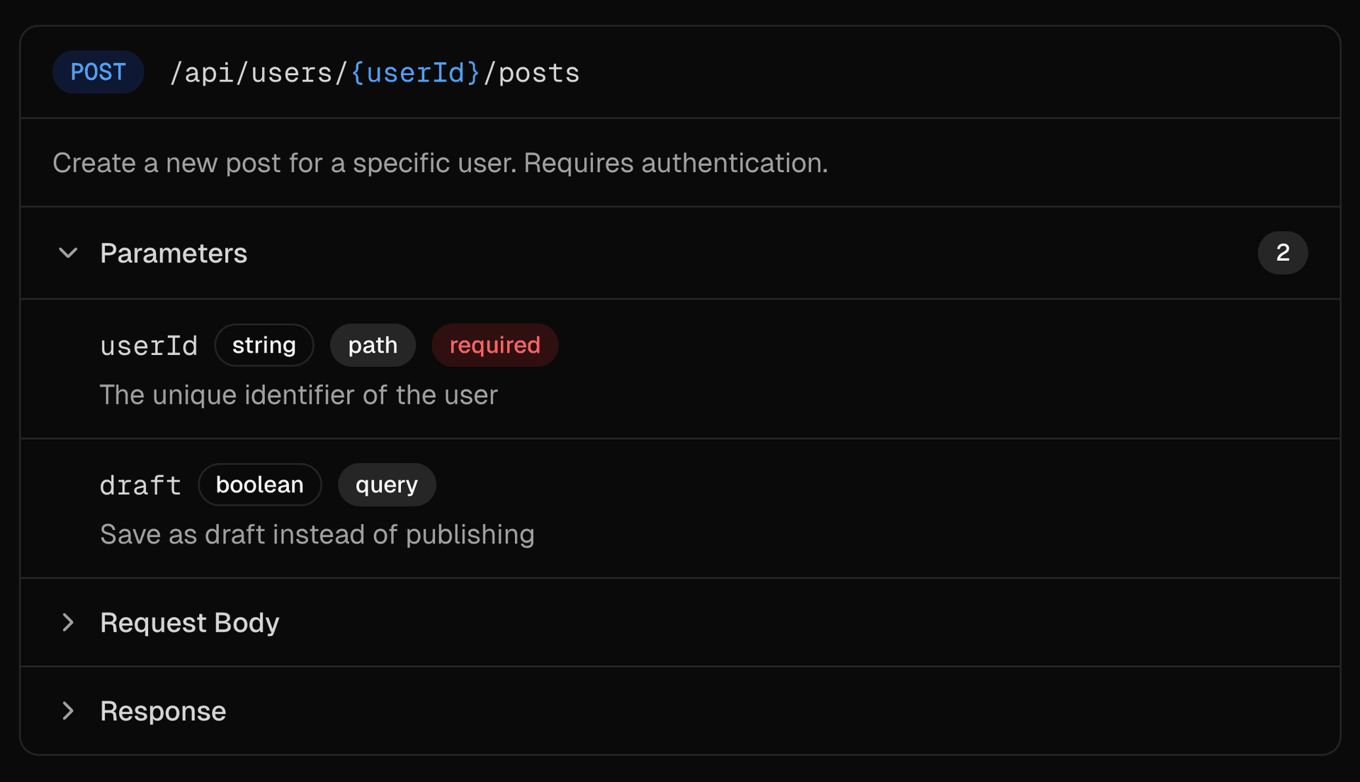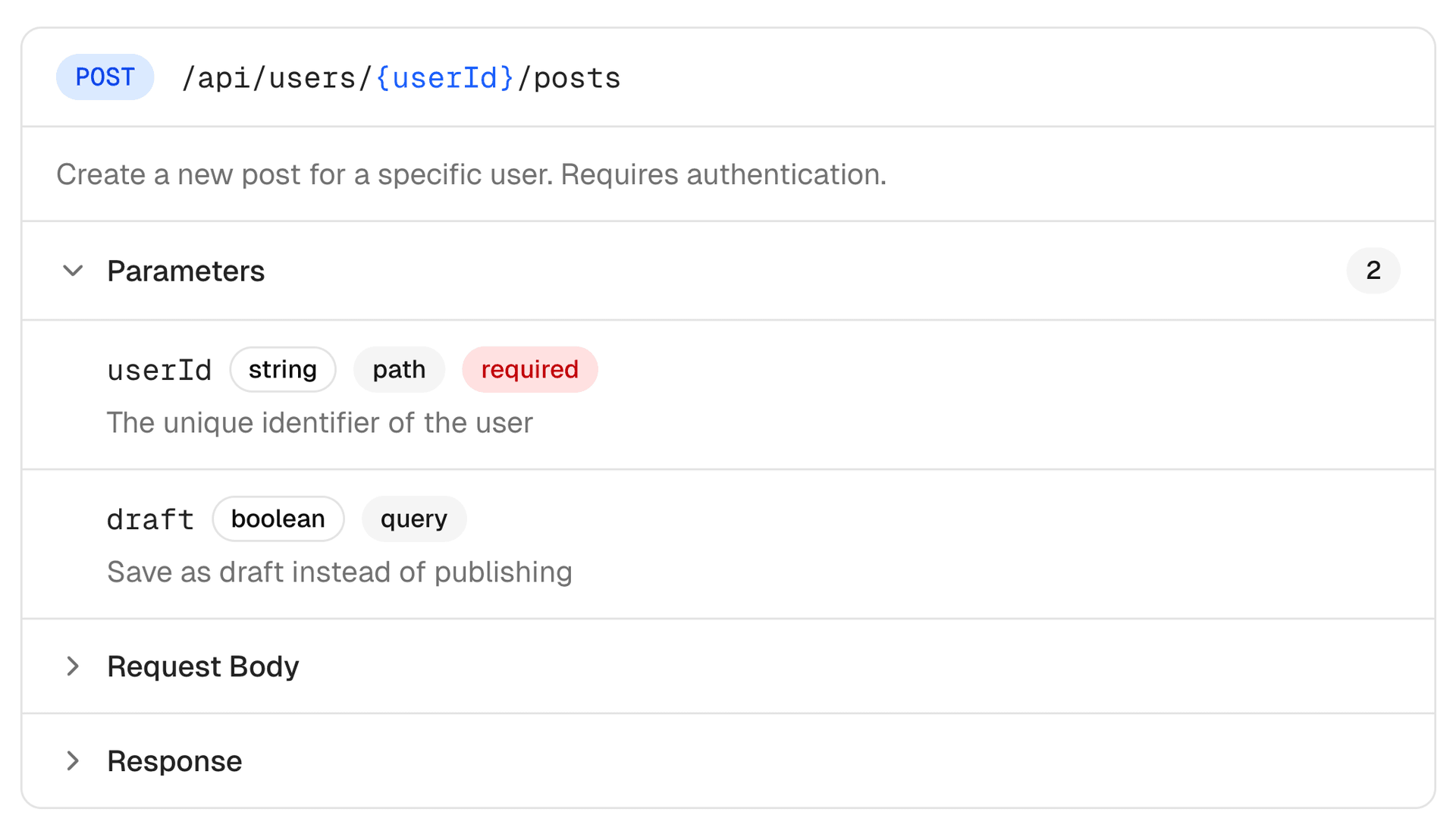 The SchemaDisplay component visualizes REST API endpoints with HTTP methods, paths, parameters, and request/response schemas.