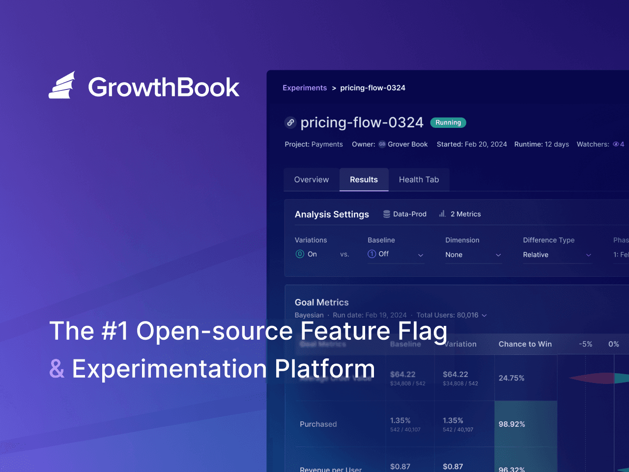 GrowthBook is the most popular open source feature flag and experimentation platform, used at scale in production by thousands of companies.